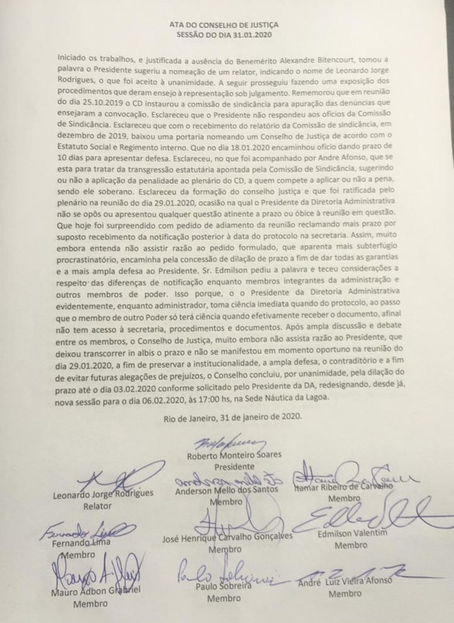A sindicância tentou apurar se houve irregularidade em associações feitas ao clube em agosto de 2019, quando houve uma adesão maior do que o normal. Encerrado o prazo, o presidente do clube não apresentou a lista e, por isso, Monteiro decidiu convocar a comissão de justiça.