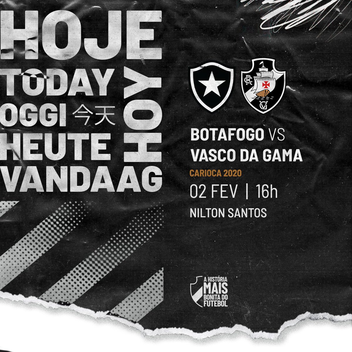 Em rede social, Vasco promove o clássico deste domingo escrevendo 'hoje' em vários idiomas