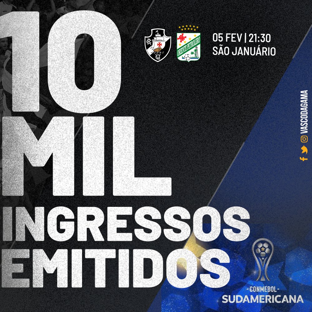 Já foram emitidos 10 mil ingressos para Vasco x Oriente Petrolero, pela Copa Sul-Americana