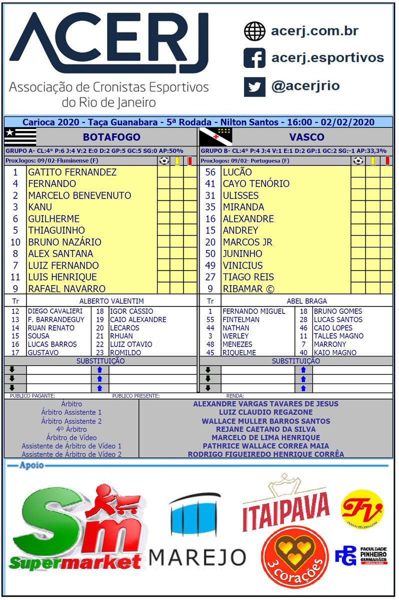 Escalações de Botafogo e Vasco pela 5ª Rodada da Taça Guanabara 2020 #acerjinforma #BOTxVAS #Cariocão2020