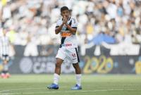 Cayo Tenório recebe na direita, vai à linha de fundo e cruza a meia altura. Vinícius toca para o gol de letra e a bola resvala em Gatito e acerta a trave.