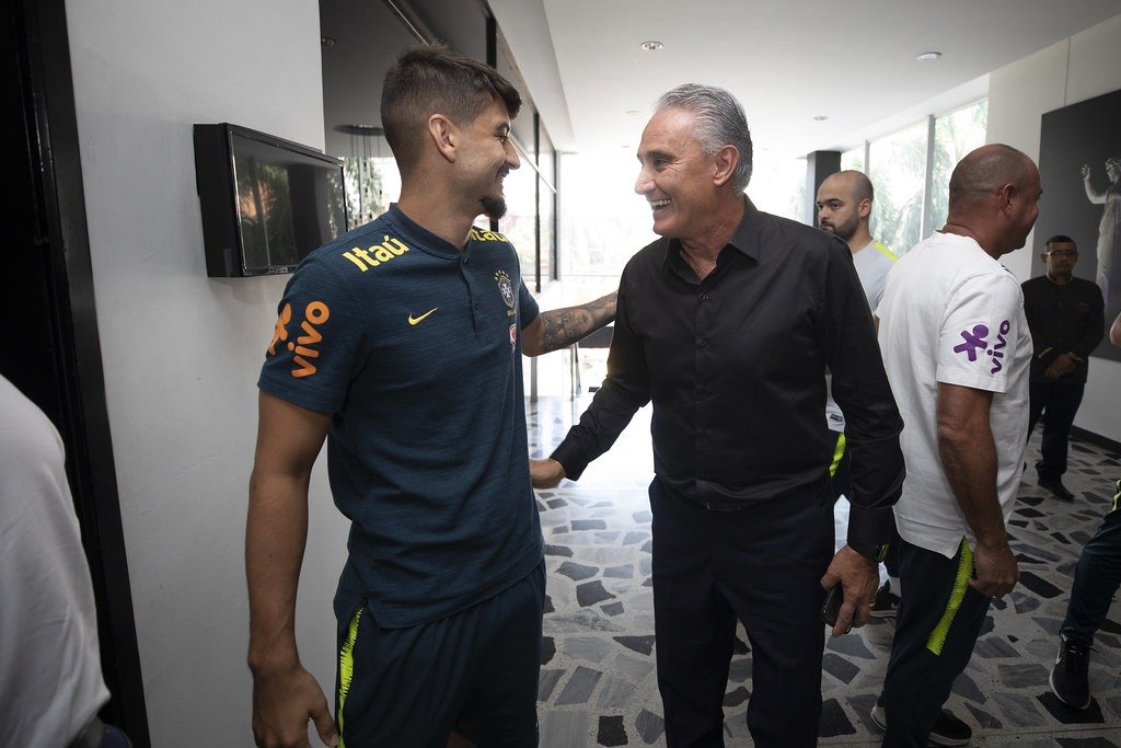 A Seleção Olímpica recebeu a visita do técnico Tite, do presidente Rogério Caboclo e do coordenador Juninho Paulista em Bucaramanga, na Colômbia. Na imagem, o zagueiro vascaíno Ricardo Graça cumprimenta o treinador da Seleção Brasileira principal.