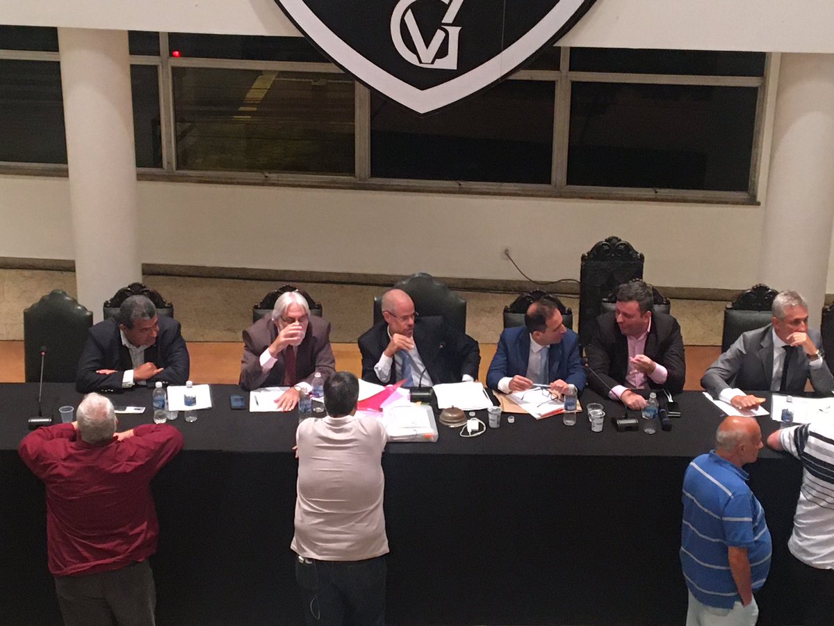 Monteiro pergunta se alguém quer encaminhar alguma proposta contra o capítulo que trata de gestão temerária. Denis Carrega Dias vai ao púpito, contesta andamento da sessão, e é aplaudido por Alexandre Campello e vice Sônia Maria Andrade dos Santos. #gevas