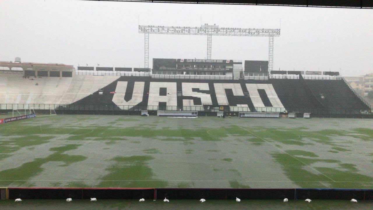 ATENÇÃO: parte de São Januário SEM LUZ por conta da forte chuva. O gramado estava com várias poças há pouco. Tensão já no ar pelo que aconteceu menos de uma semana atrás #lanceVAS