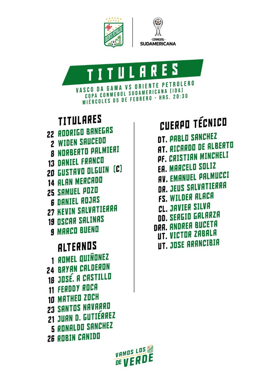 Veja a escalação do Oriente Petrolero para o jogo contra o Vasco