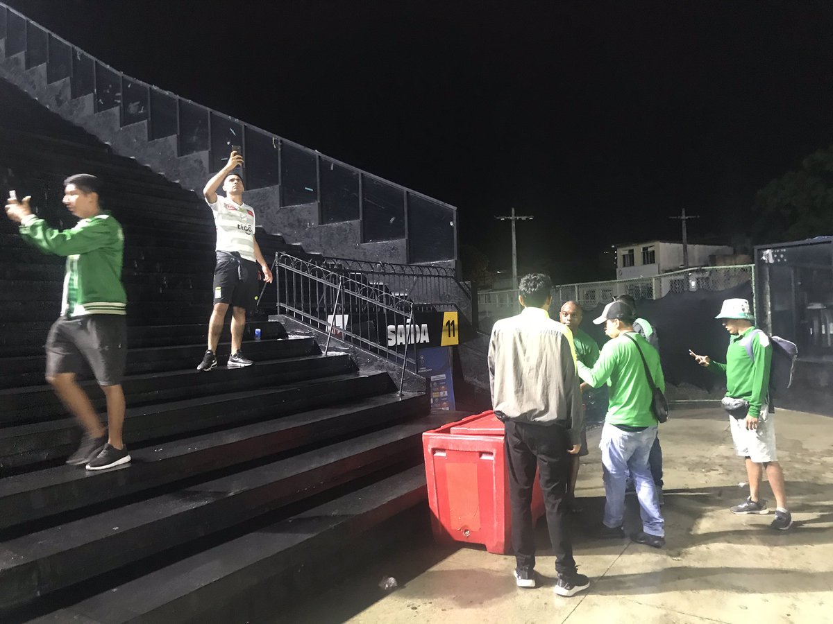 Os torcedores do Oriente Petrolero já vão entrando em São Januário. Este grupo chegou ontem ao Rio de Janeiro