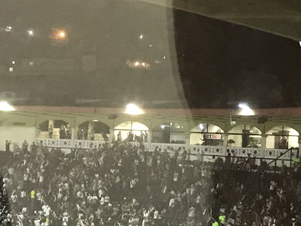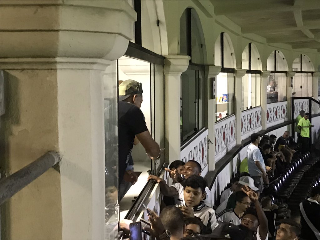 "O Guarín voltou", canta a torcida. Obviamente meu celular não permite ver bem, mas ele está ali falando com a galera #lanceCOLINA