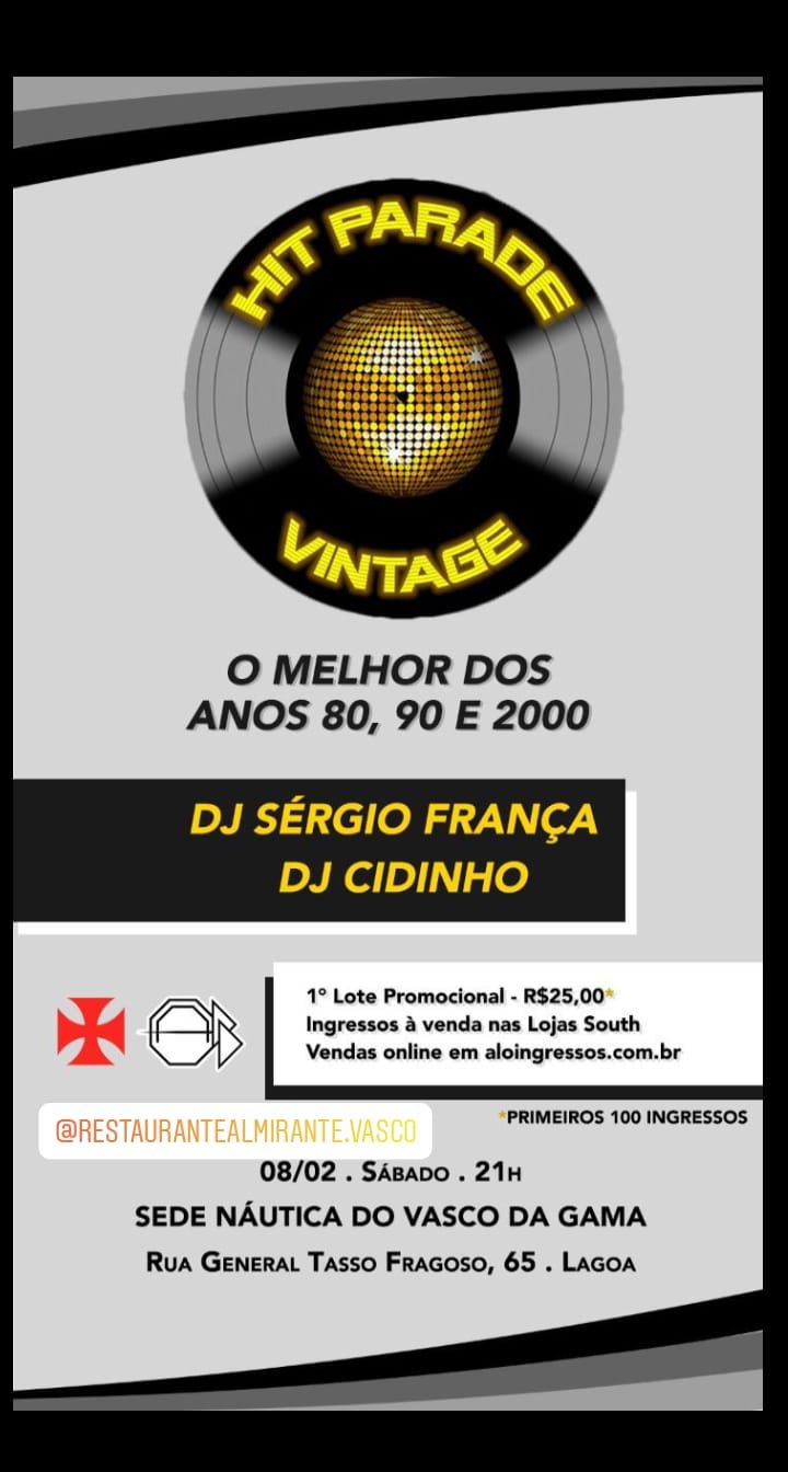 Vasco anuncia 'Hit Parade Vintage' neste sábado na sede da Lagoa