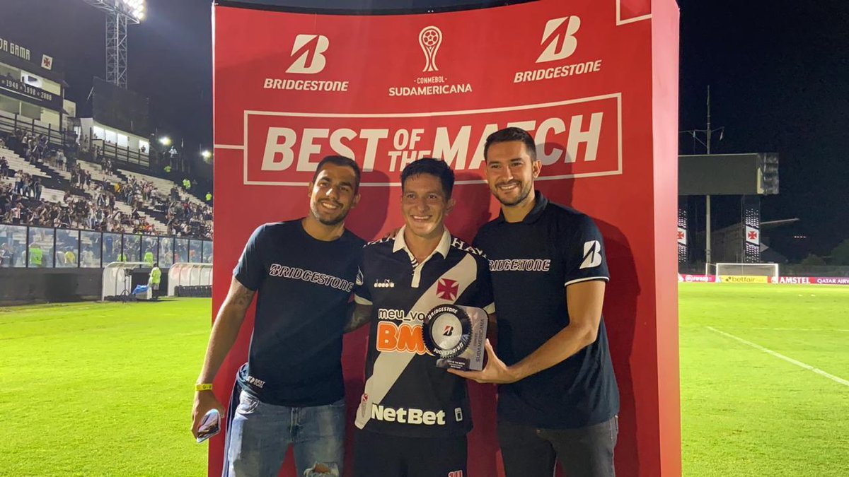 Confira foto do momento em que Cano recebeu o prêmio 'Best Of The Match' de Vasco x Oriente Petrolero
