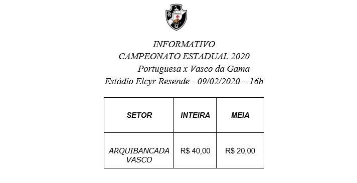 Informações sobre ingressos para Portuguesa x Vasco