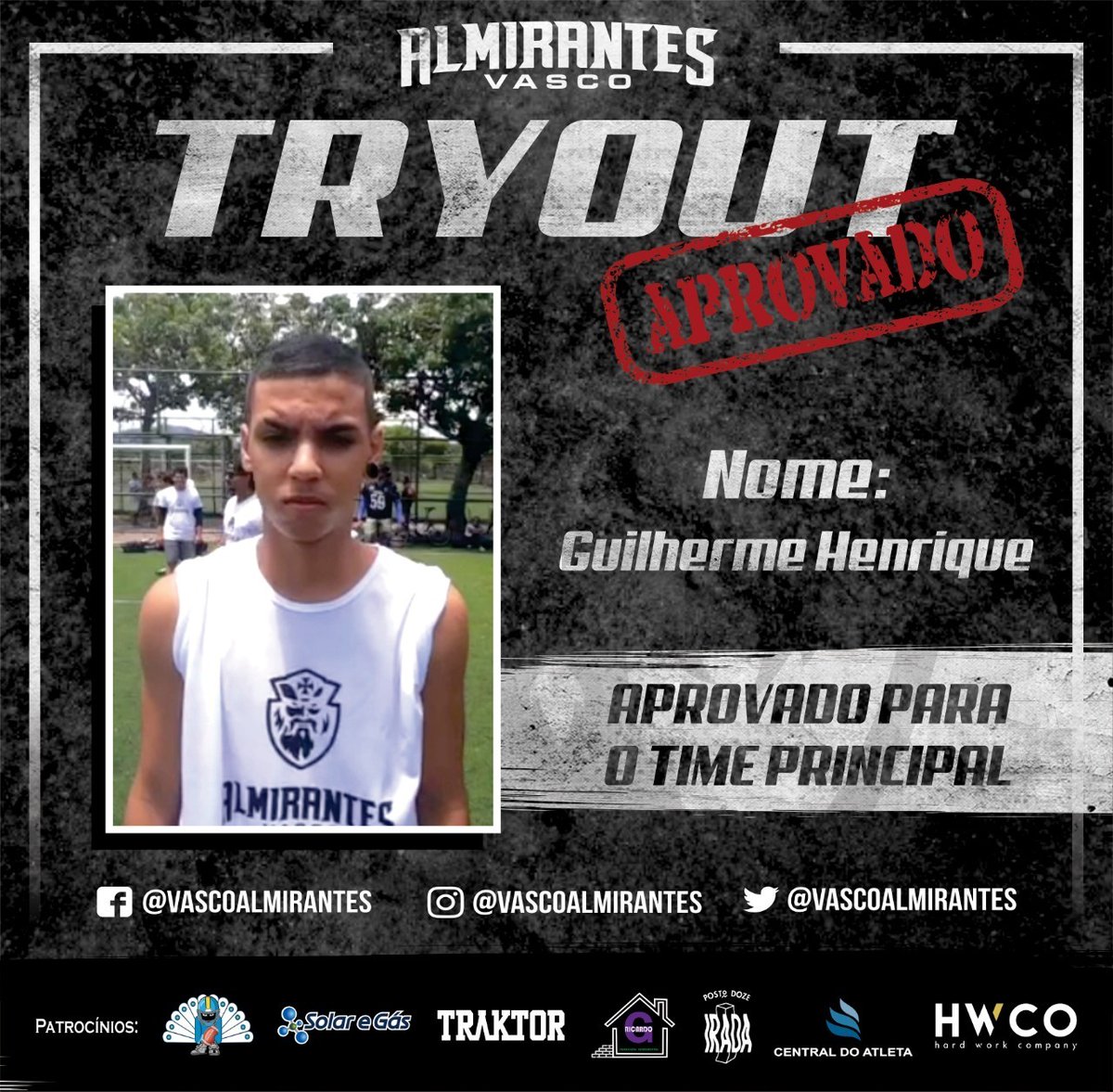 Primeiro Resultado do Tryout! Guilherme foi aprovado para o Time Principal! Parabéns, foi o único selecionado para integrar diretamente o time principal.