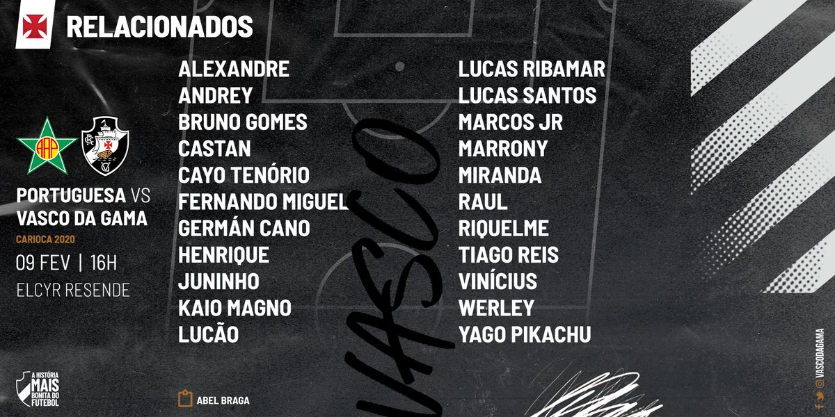 Confira os relacionados do Vasco para o jogo contra a Portuguesa