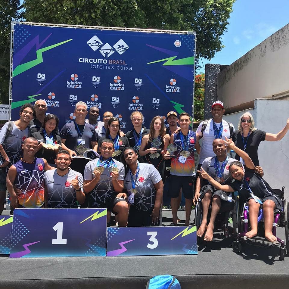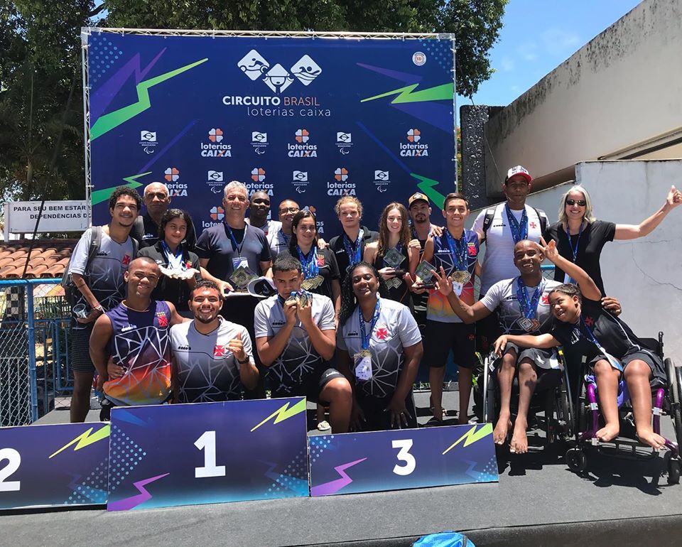 A equipe de natação paralímpica do Club de Regatas Vasco da Gama sagrou-se campeã da etapa Rio-Sul no Circuito de Loterias Caixas, que foi disputado no último fim de semana, em Vitória, no Espírito Santo. O título veio após a conquista de 64 medalhas no total, sendo 43 de ouro, 13 de prata e oito de bronze.