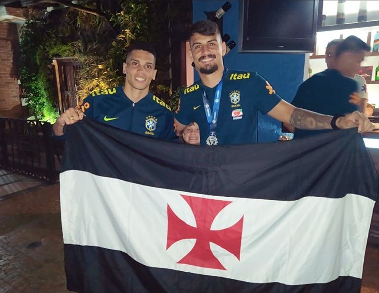 Classificados com a Seleção Sub-23 para Tóquio 2020, Ricardo Graça e Paulinho posam para foto com bandeira do Vasco; veja