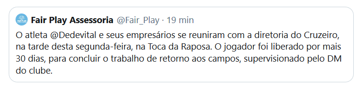 Assessoria de Dedé atualiza status do zagueiro, liberado por mais 30 dias para concluir trabalho de retorno aos gramados