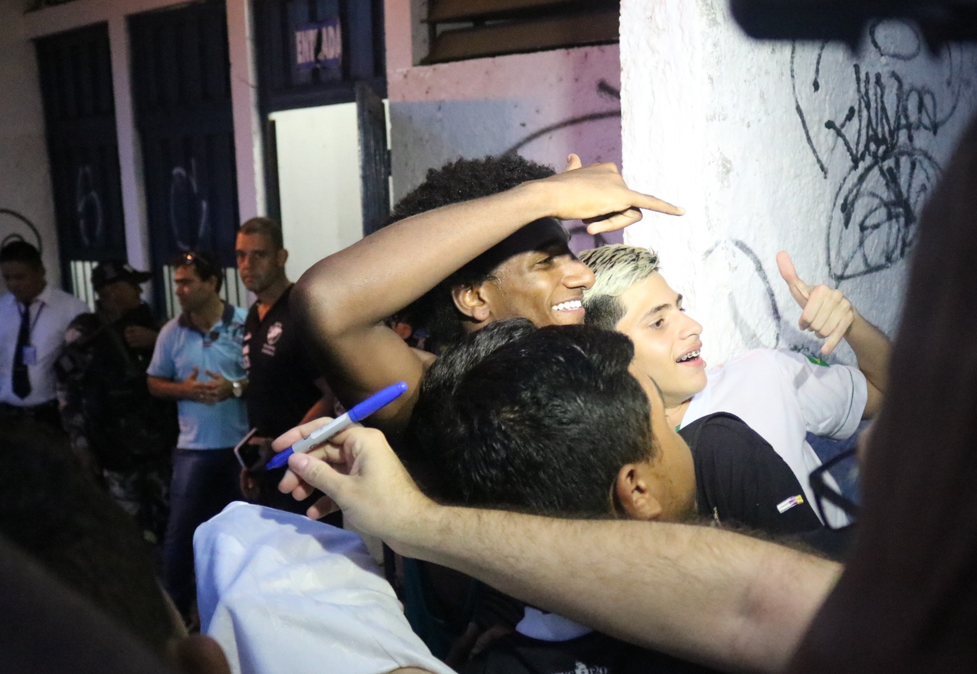 No meio dos torcedores e causando alvoroço nos vascaínos, Talles respondeu, entre uma pausa e outra para fotos, se iria ou não para o duelo.