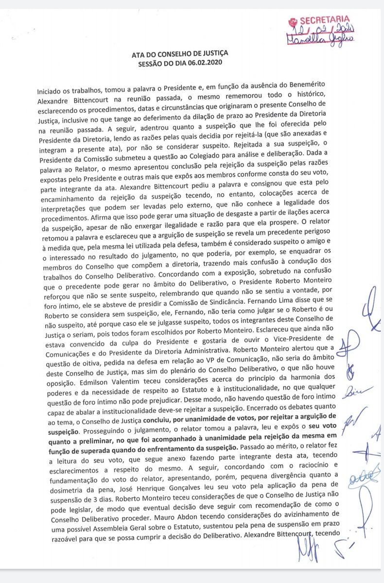 Confira ata do Conselho de Justiça e detalhes da decisão de suspensão por 5 dias de Campello