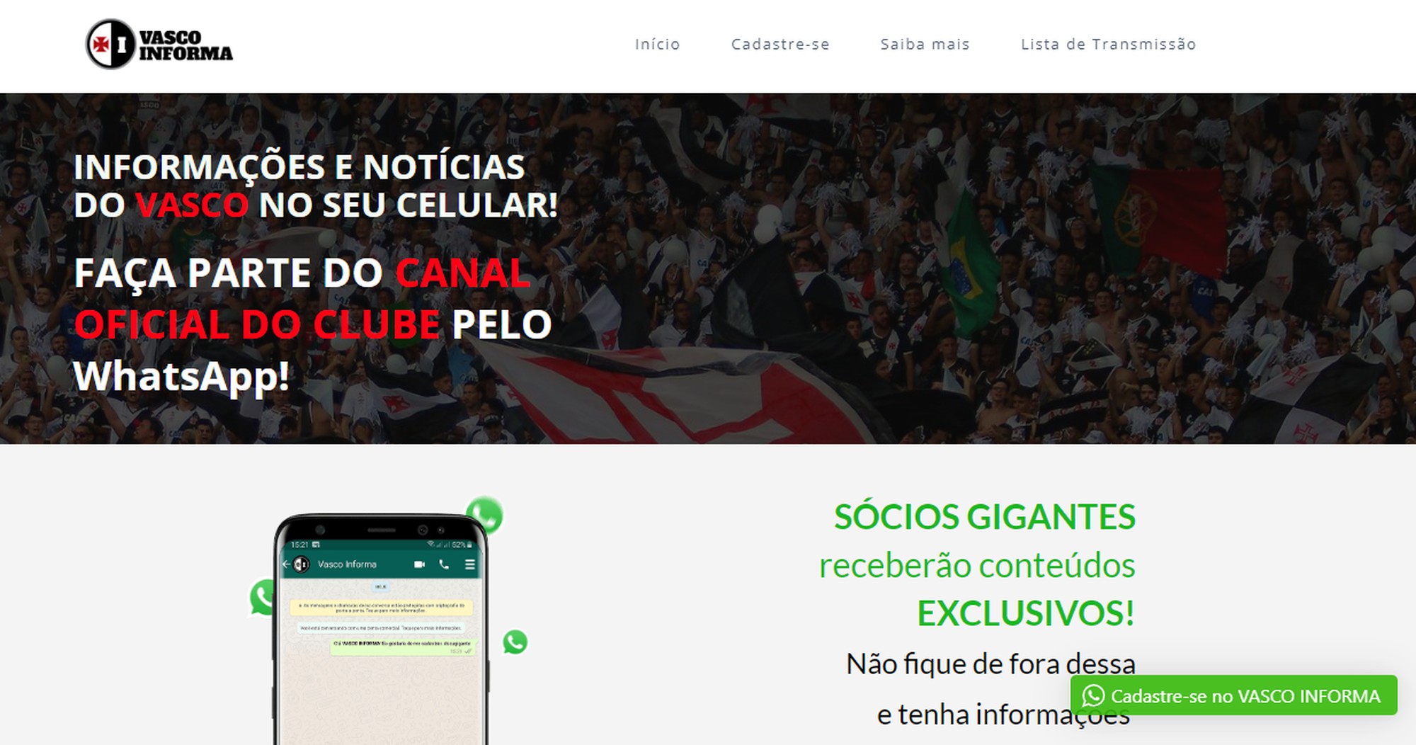 Torcedores e sócios que se cadastrarem receberão em primeira mão informações das ações do clube diretamente em seus celulares, como contratações, renovações, andamento das obras do CT, informativos sobre os jogos, venda de ingressos e outras notícias referentes ao dia a dia do Vasco.