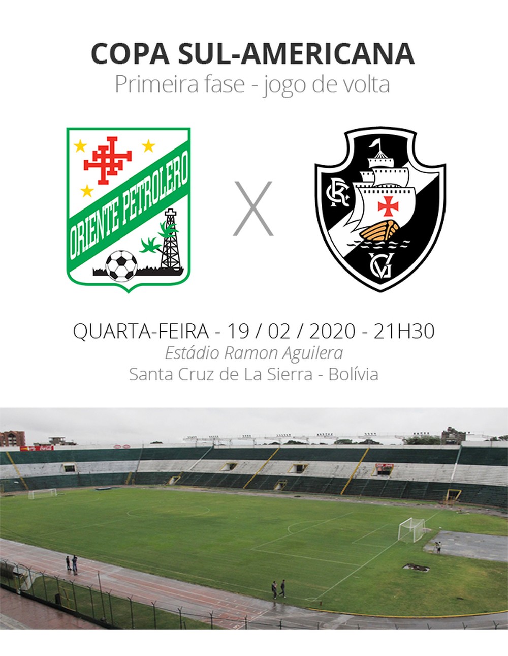 No jogo de ida, há duas semanas, em São Januário, o Vasco venceu por 1 a 0, com gol de Germán Cano. Por isso, entra em campo nesta noite com a vantagem de jogar por um empate. Se conseguir marcar ao menos um gol, o Oriente Petrolero precisará abrir dois de diferença para avançar. Caso os bolivianos vençam por 1 a 0, a vaga será decidida nos pênaltis.