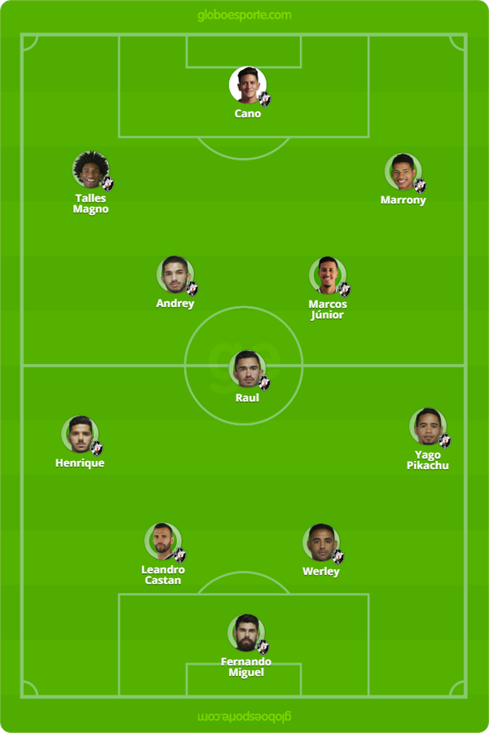 O Vasco não deve ter mudanças em sua escalação. A expectativa é que Abel Braga repita o mesmo time que empatou com o Altos-PI, na semana passada, pela Copa do Brasil. A única novidade fica no banco de reservas. Após ajudar o Brasil a conquistar uma vaga nas Olimpíadas de Tóquio, Ricardo Graça voltou e foi relacionado pela primeira vez no ano.