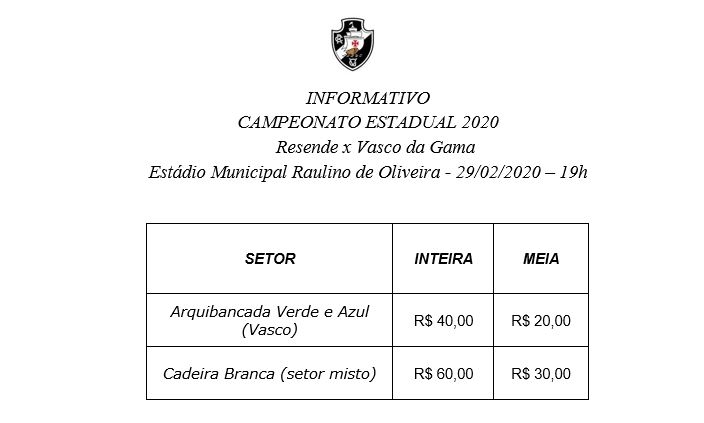 Bilheteria Mega Loja (10h às 17h) – Sócio e Torcida Vasco