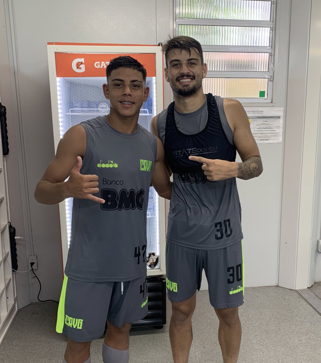 Jovem lateral Hygor publica fotos ao lado de Bruno Gomes e Ricardo Graça após o treino desta 6ª-feira