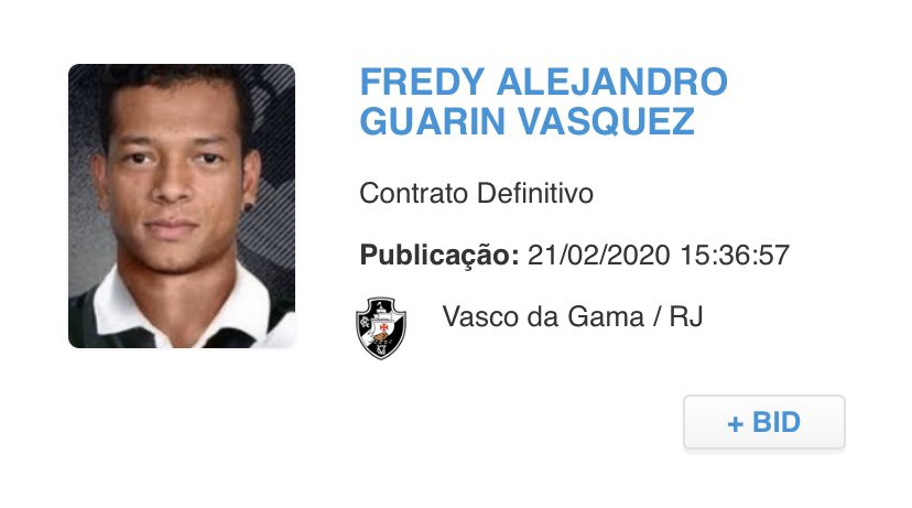 Guarin foi registrado no BID pelo @VascodaGama: