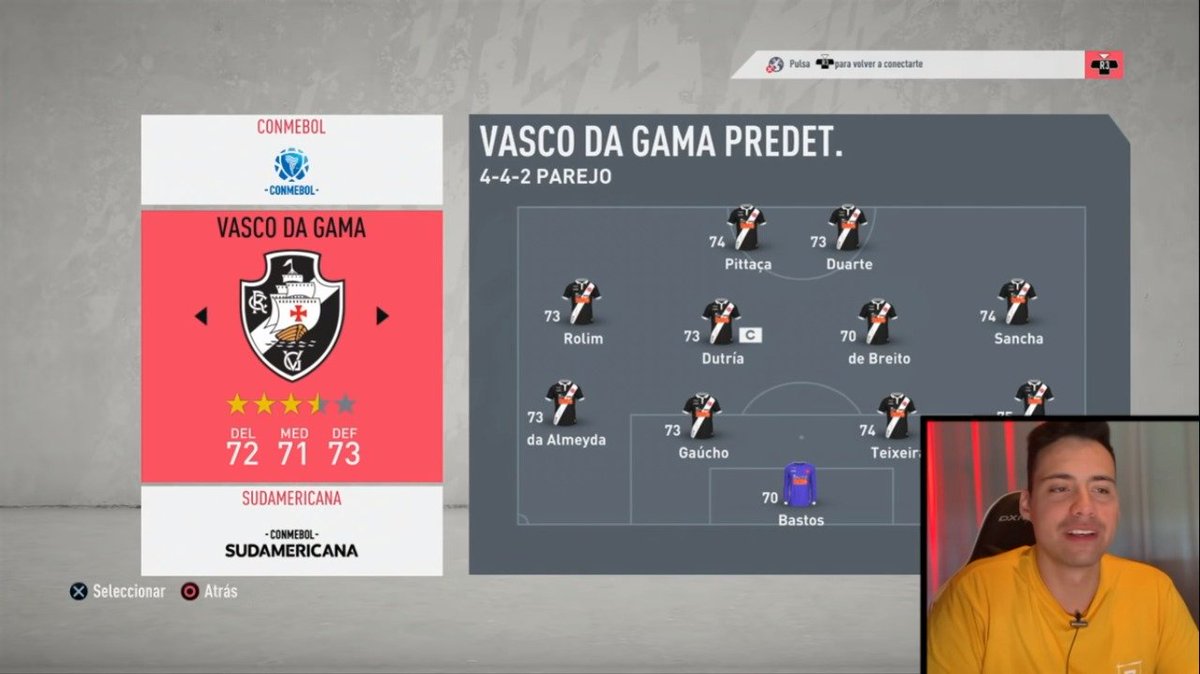 Os uniformes estão atualizados. Será possível disputar a Libertadores, Sul-Americana e a Recopa Sul-Americana na nova atualização do game. No 'Modo Carreira', o clube não estará disponível.. Você poderá jogar com o Vasco no 'Modo Kick-Off'.