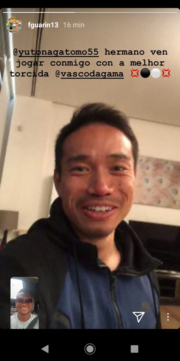 Fredy Guarin, via Insta Stories, convidou seu amigo Yuto Nagatomo para jogar no Vasco da Gama: "Irmão, vem jogar comigo com a melhor torcida!"