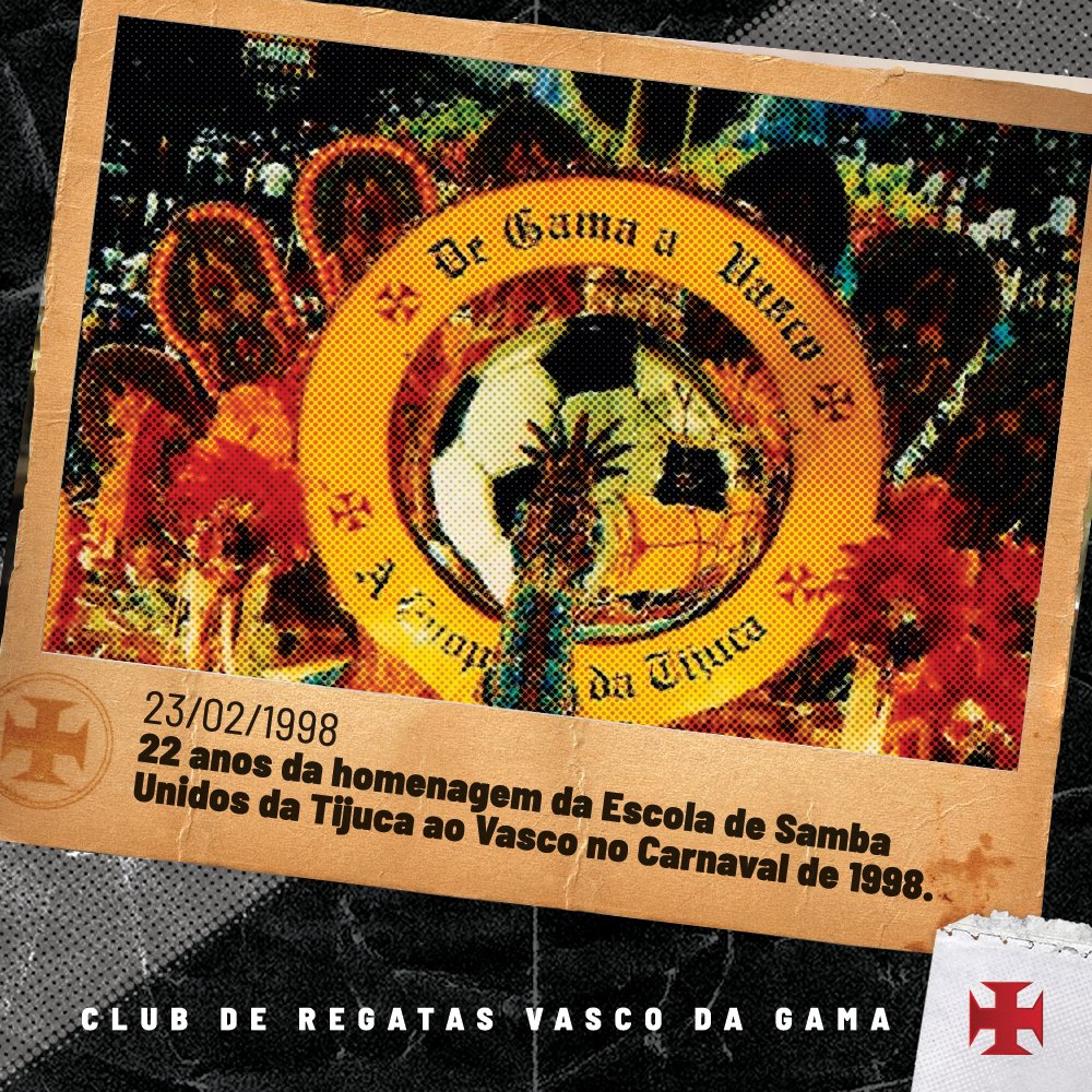 Em rede social, Vasco relembra o desfile da Unidos da Tijuca em sua homenagem, há 22 anos