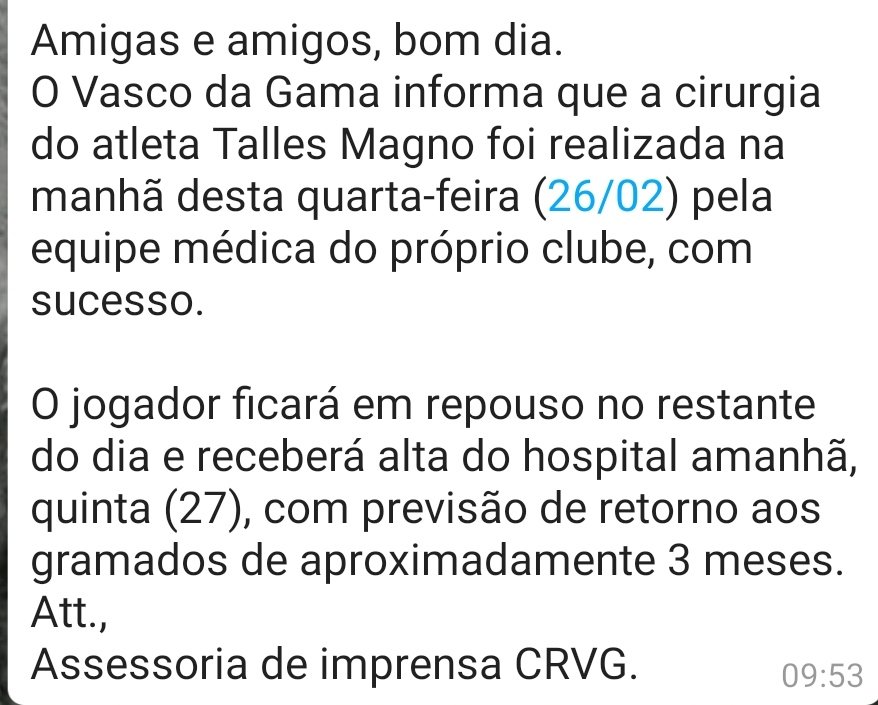 10:32 - Diretor médico do Vasco fala sobre a cirurgia de Talles Magno; veja vídeos