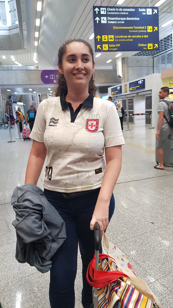 Lícia Gomes veio de Buenos Aires no mesmo voo de Benítez. Já tirou foto e ganhou "saludos" para toda família. Deu sorte!