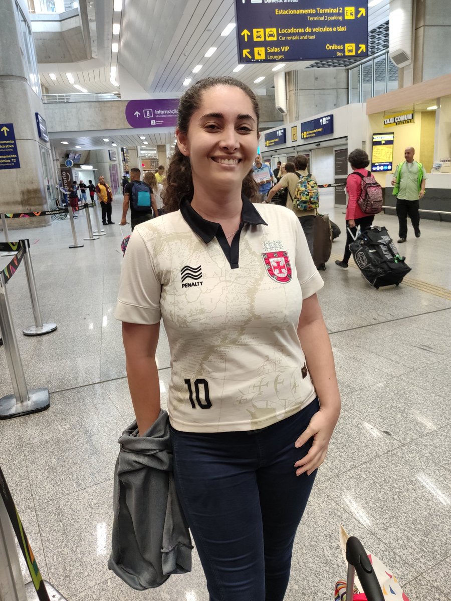 Licia Gomes, torcedora do Vasco, encontrou Benítez no desembarque. Ela também está vindo da Argentina. 'Desejei sorte e ele agradeceu, foi muito legal'. #gevas