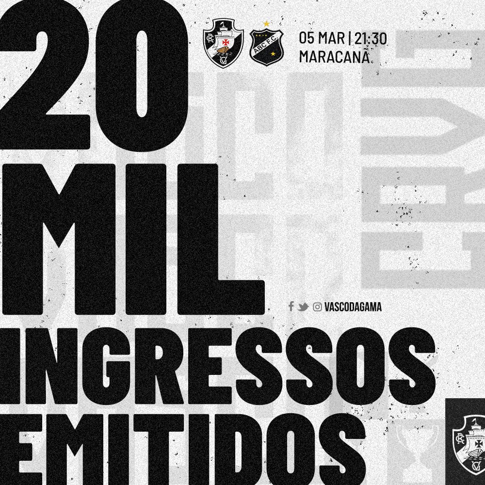 Já foram emitidos 20 mil ingressos para Vasco x ABC, no Maracanã, pela Copa do Brasil