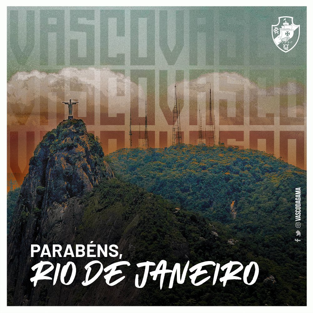 Em rede social, Vasco parabeniza a cidade do Rio de Janeiro pelos seus 455 anos