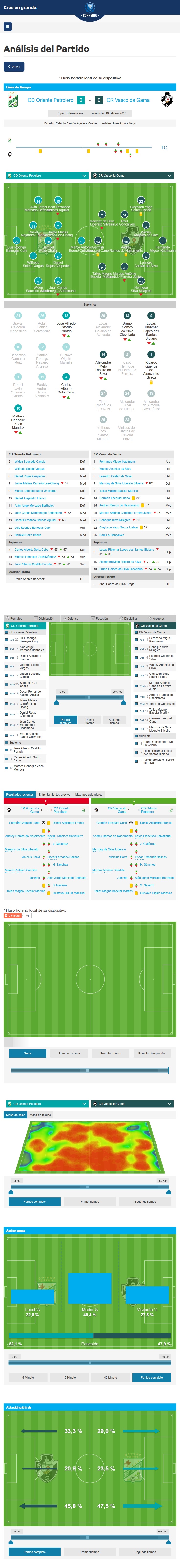 Confira o relatório da Conmebol de Oriente Petrolero 0 x 0 Vasco