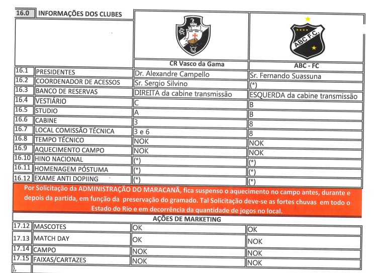 Administração do Maracanã solicitou que não houvesse aquecimento no gramado nesta 5ª-feira, mas Vasco não seguiu a recomendação
