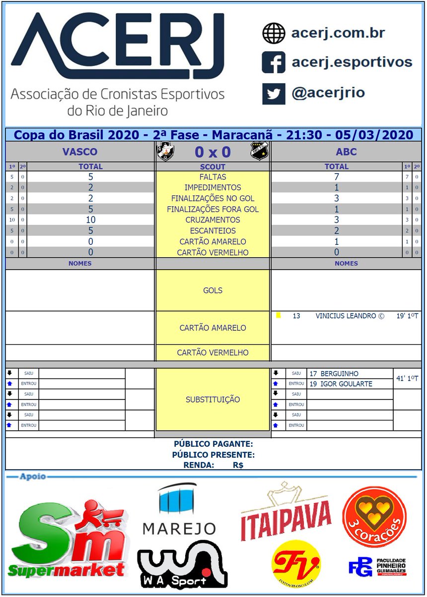 Scout do 1º Tempo de Vasco e ABC pela 2ª Fase da Copa do Brasil 2020 #acerjinforma #VASxABC #copadobrasil2020
