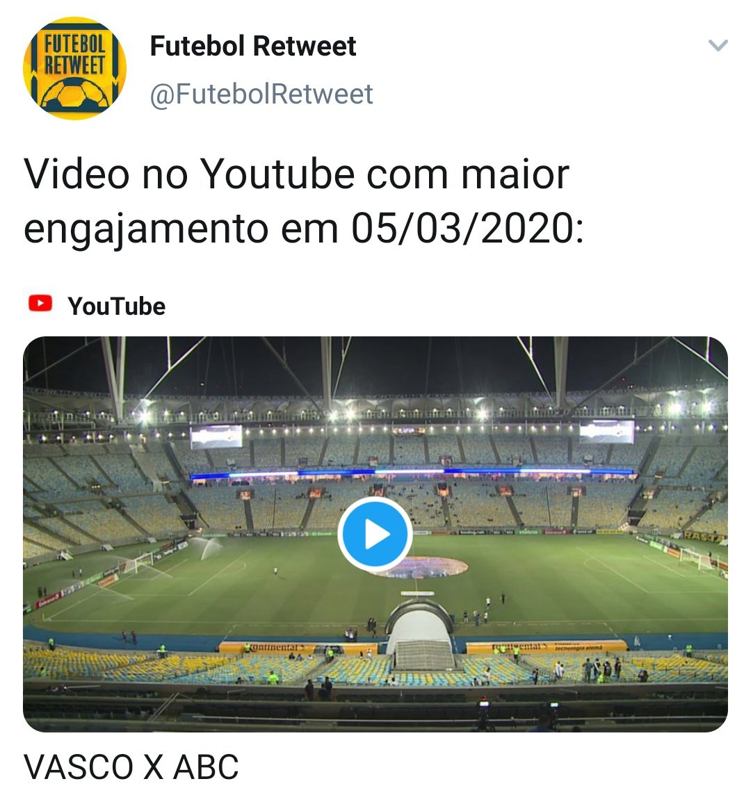 Transmissão de VASCO x ABC foi o vídeo no YouTube com maior engajamento.