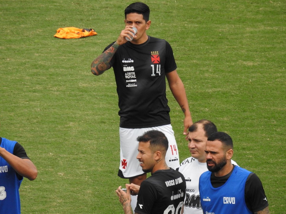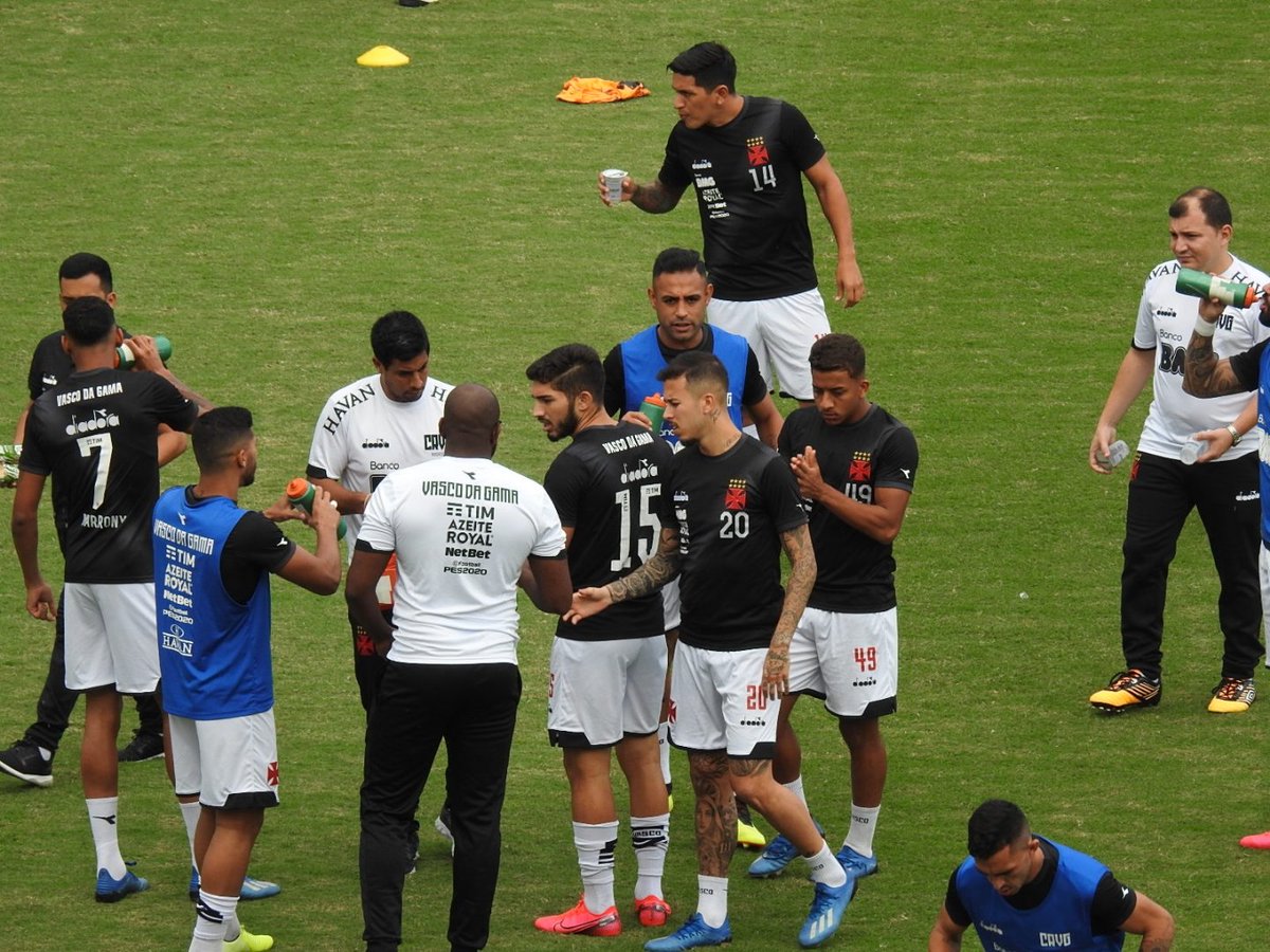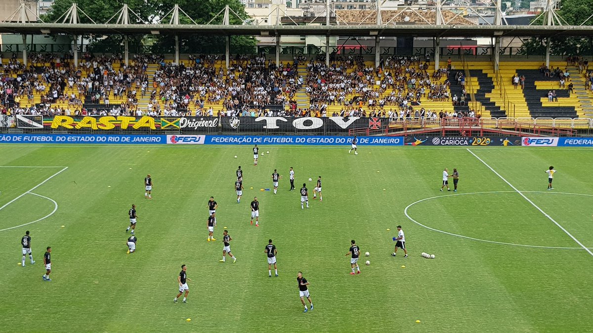 Veja foto dos jogadores do Vasco durante aquecimento no Raulino de Oliveira