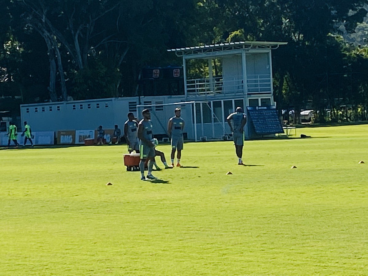 Fellipe Bastos, Andrey, Henrique, Tenório e Pikachu treinam cobranças de falta antes do treino. Apenas início da atividade será aberta à imprensa #gevas