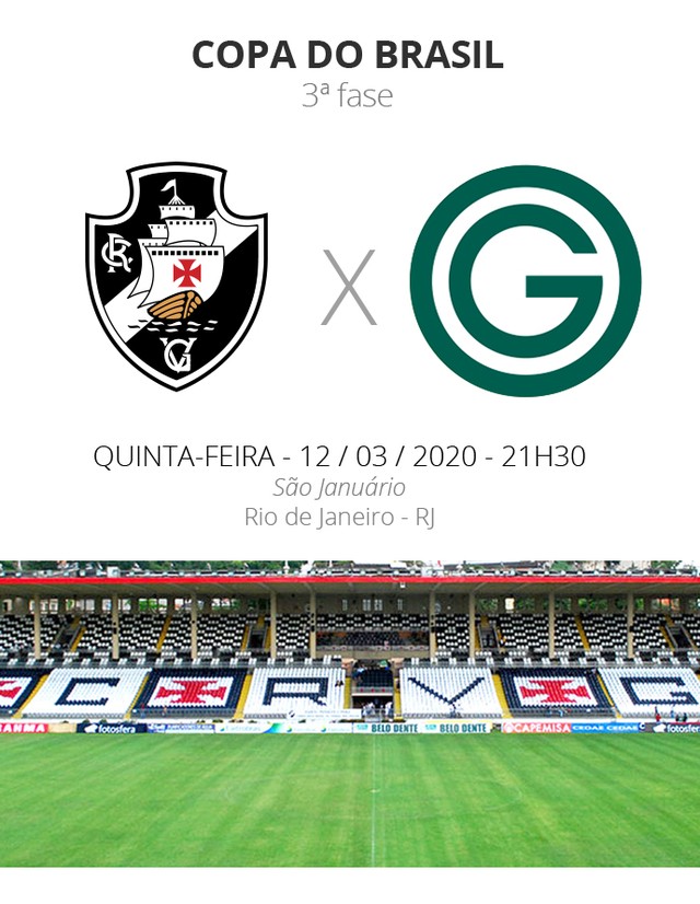 Vasco e Goiás se enfrentam na noite desta quinta, às 21h30, em São Januário. Será o primeiro jogo entre as duas equipes pela terceira fase da Copa do Brasil. O próximo encontro, decisivo, acontece na próxima quinta, em Goiânia.