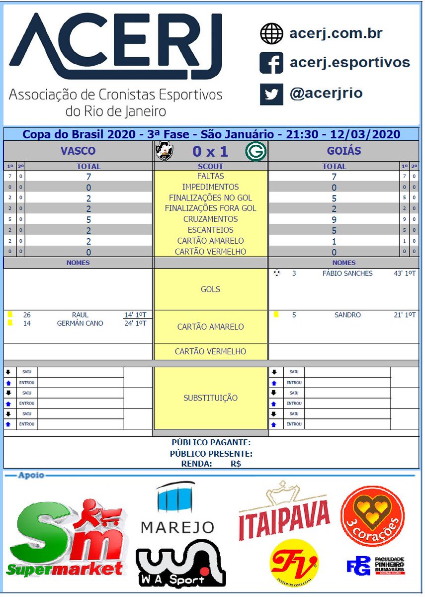 Scout do 1º Tempo de Vasco e Goiás Clube pela 3ª Fase da Copa do Brasil 2020 #acerjinforma #VASxGOI #copadobrasil2020