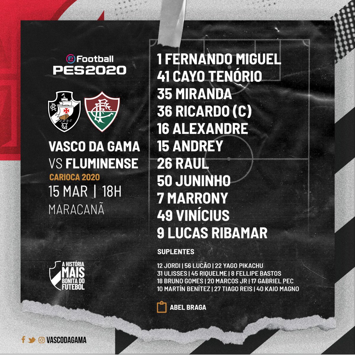Vasco escalado para enfrentar o Fluminense. #trmaraca