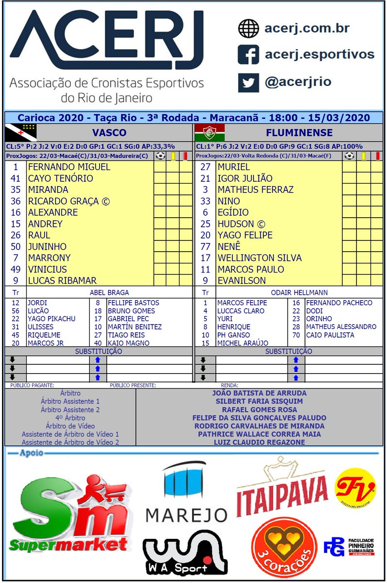 Escalações de Vasco e Fluminense pela 3ª Rodada da Taça Rio 2020 #acerjinforma #VASxFLU #Cariocão2020