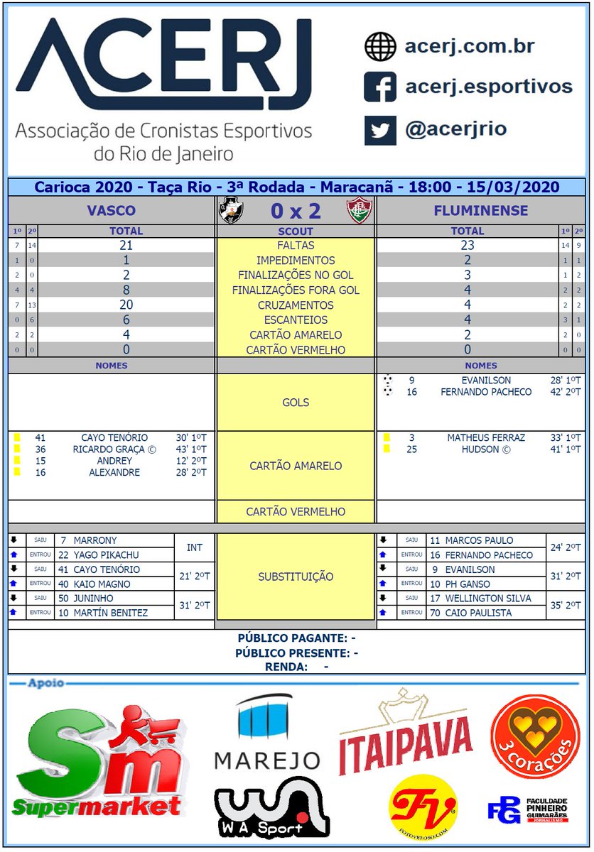 Cartões amarelos: Cayo Tenório, Andrey, Alexandre e Ricardo Graça (Vasco); Matheus Ferraz e Hudson (Fluminense)