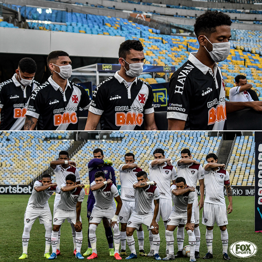 O clássico entre Fluminense e Vasco também foi palco de protesto por parte dos jogadores, por seguirem atuando em meio à pandemia do coronavirus!