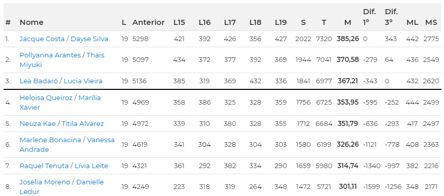 A dupla vascaína Lea Badaró e Lucia Vieira conquistou a medalha de bronze na Taça Brasília de Duplas 2020, disputada de 13 a 15/03 na capital federal.