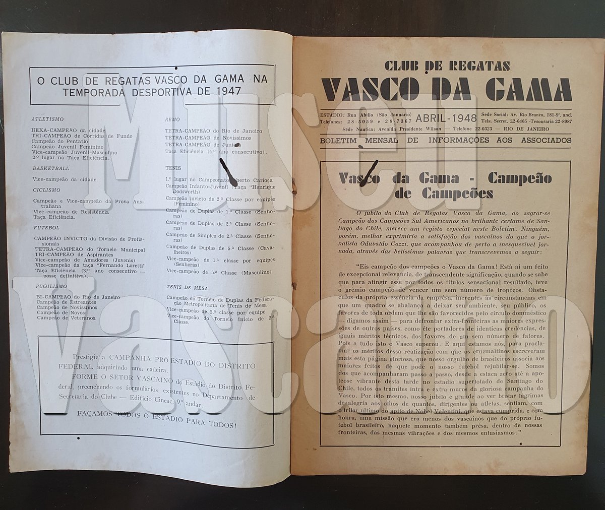 Veja revista oficial do Vasco de 1948 que fala sobre o título sul-americano conquistado no Chile