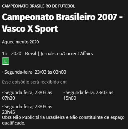 19/03/20 - Sportv mostra Vasco 3 x 1 São Caetano, final do Brasileiro de 2000, às 16h